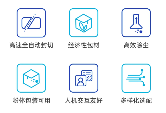 另外,微孔脱气、袋口清理、纳米棒抽气、袋口排气等各功能部件可灵活组合,高效应对各种特殊粉体的包装。